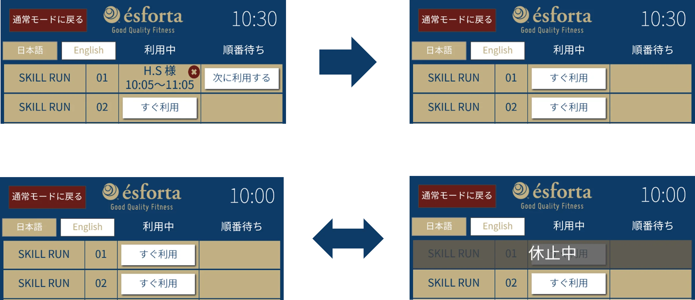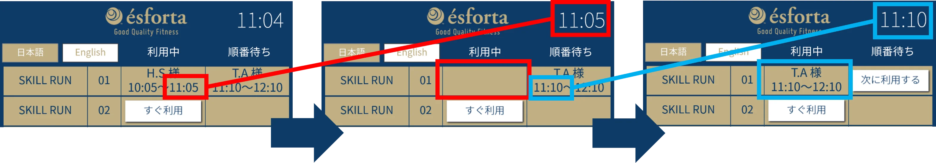 利用者は名前と利用時間を入力するだけで画面に反映されます。入力された利用時間を過ぎれば一覧から消え、順番待ちの時間になれば利用中に反映されます。