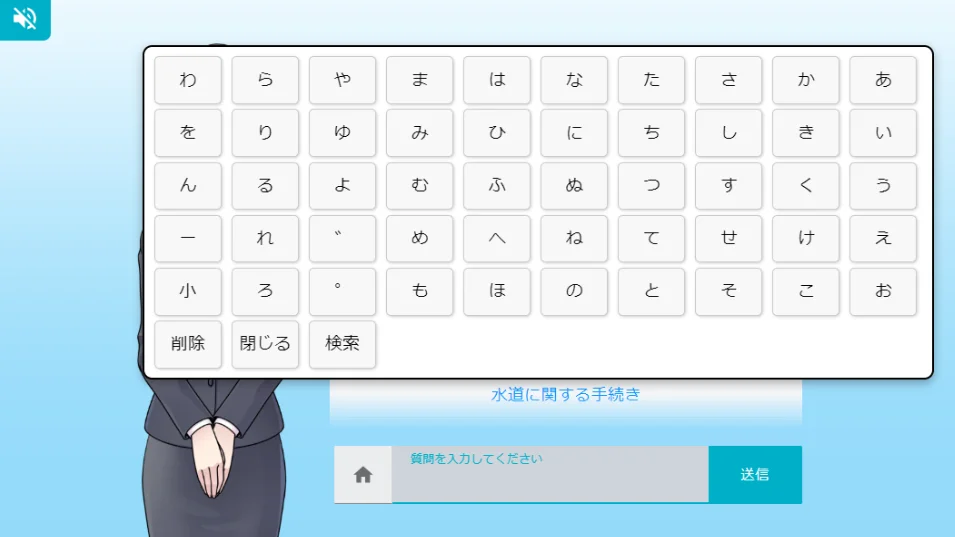 チャットボットはWebブラウザ上に表示され、タッチ操作でもスムーズに入力できるよう、画面上にキーボードを表示する仕組みも整えました。