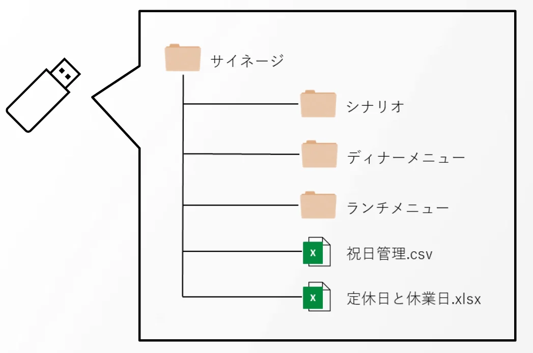 メニューや営業日情報の変更は、画像やExcelファイルを編集し、USBメモリで上書きするだけで反映されます。