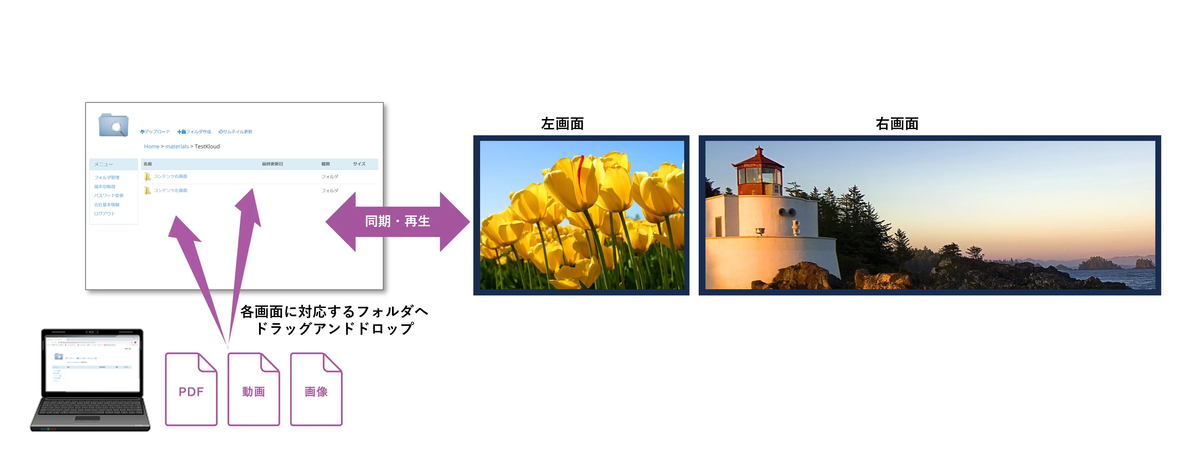 素材をドラッグアンドドロップするだけでデジタルサイネージに表示反映