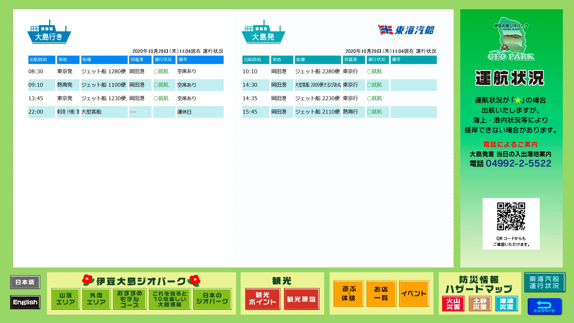 連絡船の運行情報は自動連携。1画面で見えるように加工して表示しています。その日に連絡船が欠航していないかどうか一目で判断できるというので、地域の住民の皆様に好評をいただいています。