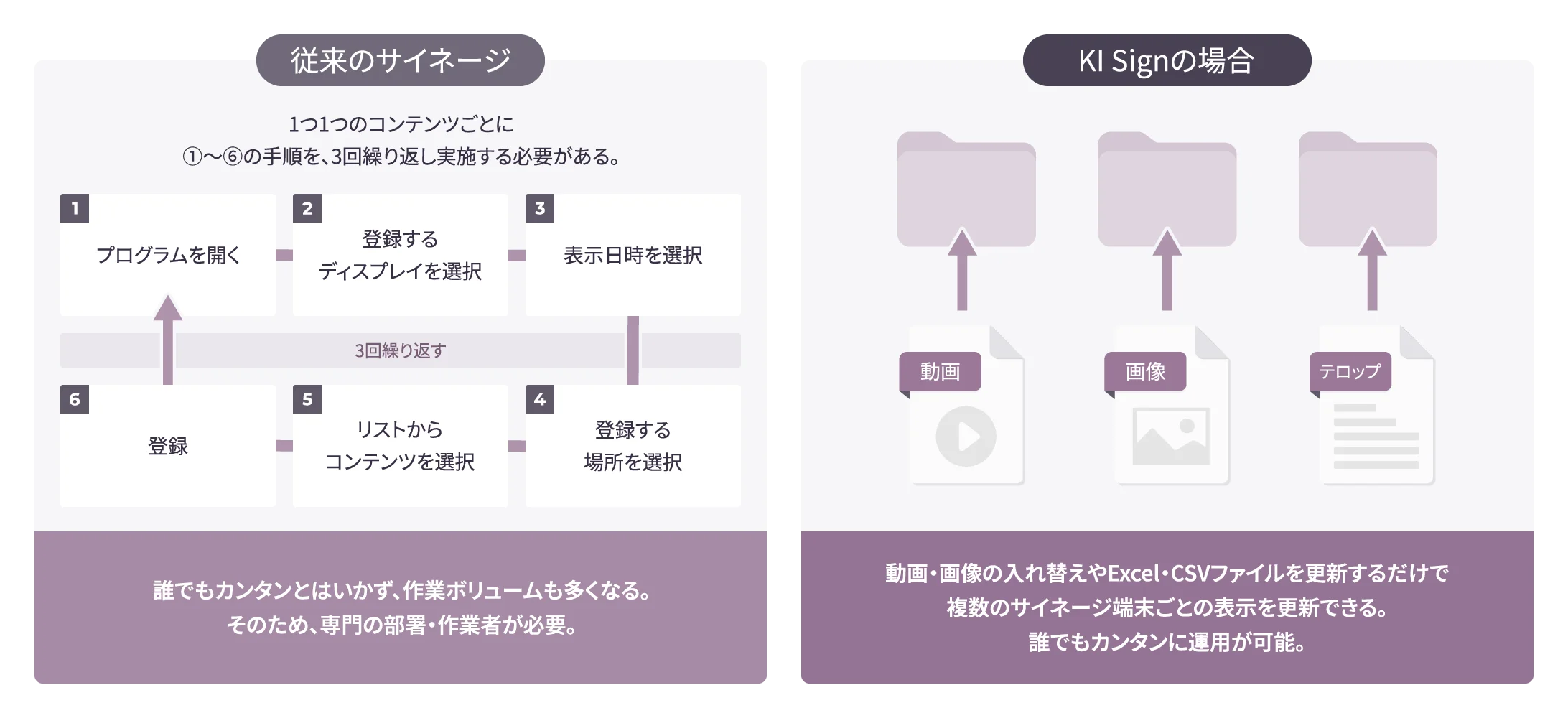 KI Signはコンテンツ管理に特別な知識や技術は不要です。 トレーニングの手間が少なく、すぐに運用を開始できるため、